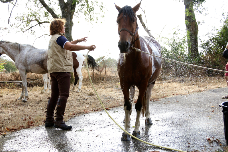 Op de boerderij zijn er verschillende paarden beschikbaar. Onder meer Selle Français, Anglo-Arabier, Berber-Arabier, Spaanse paarden en diverse kruisingen zijn beschikbaar voor de trektocht. Sommige paarden werden hier geboren en zijn afgericht om de perfecte gezel te zijn voor de trektocht. De dieren leven samen in groep, wat het tijdens de trektocht makkelijker maakt voor iedereen.