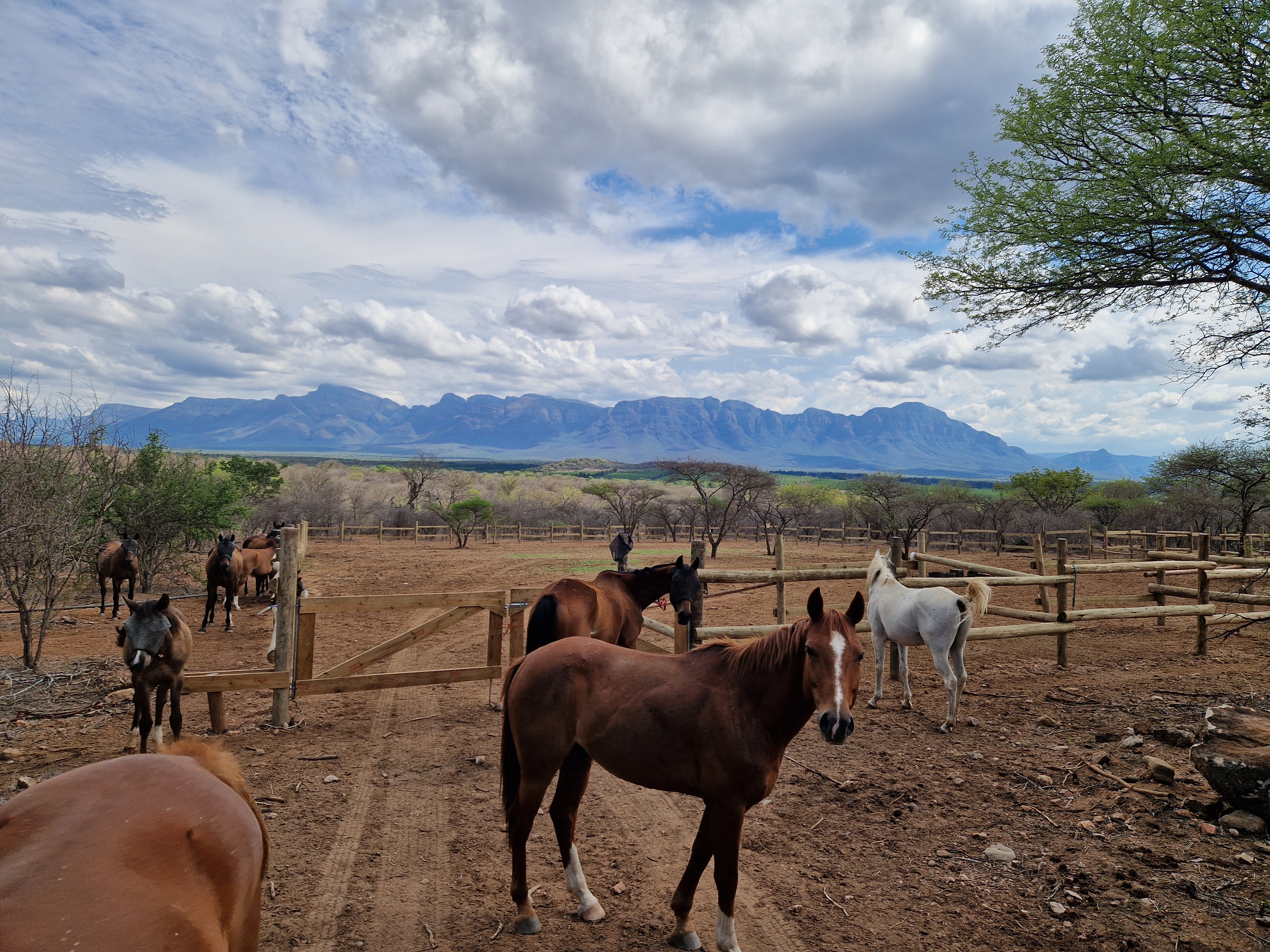De locatie heeft twaalf paarden, voornamelijk volbloeden, arabieren, appaloosa’s, quarter horses en verschillende kruisingen. Het zijn energieke paarden die volledig gewend zijn aan het leven tussen wilde dieren. Er wordt gereden met Engelse hoofdstellen en Engelse- en trektocht zadels. De ritten zijn geschikt voor ruiters van een gevorderd niveau met buitenrijervaring, die comfortabel zijn in alle drie de gangen.